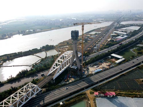 木兰溪特大桥主塔塔柱浇注完成