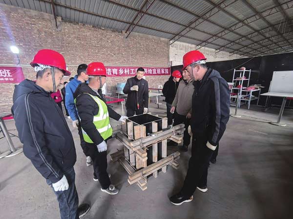 此次培训设置水电安装工、钢筋工、木工、砌筑工4个工种,采用“理论教学+实操训练+考核测试”相结合的模式,课程紧密贴合乡村建设实际需求。内容既包含法律法规、识图测量、工程材料等基础理论,也覆盖施工实操、质量管控、安全防护等实用技能。培训结束后统一组织考试,考试合格人员获颁培训合格证书及职业技能等级证书。
