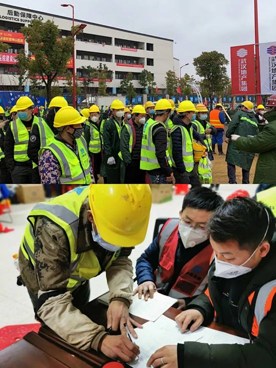 由于湖北省内各地实行封城,来自湖北各地的管理人员和班组人员无法离开居住地前往武汉。随着王瑞羽主动请缨,陆续收集湖北籍管理人员和劳务班组个人信息,并为他们协调开出援建介绍信,各路参建者凭着这一纸召集令和通行证,湖北各地关卡纷纷为建设者开启绿灯,确保建设者们尽快到达现场工作。