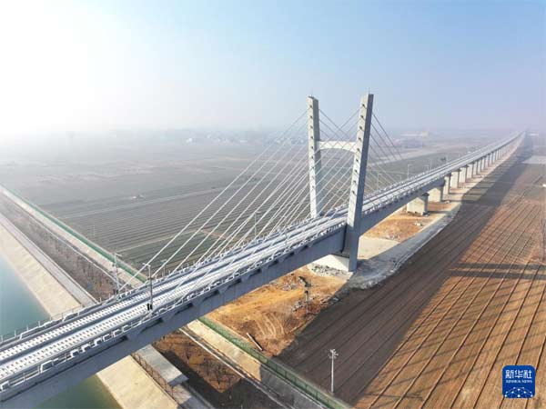 2月1日上午,在河北省保定市顺平县的雄忻高铁建设现场,中铁三局集团施工人员将首对500米长钢轨平稳、精准地铺设在无砟道床上,标志着雄忻高铁正式进入铺轨施工阶段。