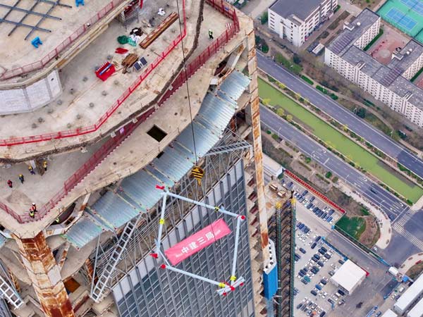 “钻石顶钢结构首件的成功吊装,标志着项目迈入了塔冠施工的新阶段,目前各项工程也在有力有序并联推进。”中建三局项目负责人说。
