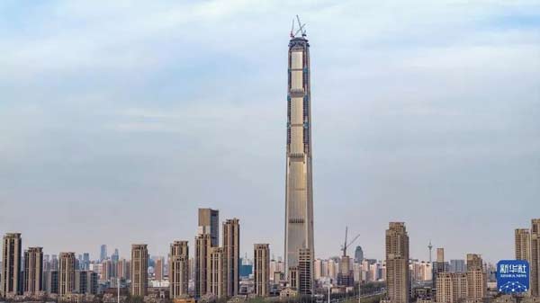3月28日,伴随着重约7.6吨的菱形钢结构部件升到约596米高的楼顶,天津“117项目”的“钻石顶”首件吊装成功,标志着该项目进入塔冠钢结构全面施工阶段。117大厦建筑总高度597米,建成后将成为中国第三高楼、北方第一高楼,也被业内称为中国结构第一高楼。